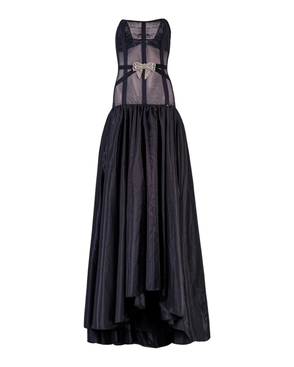 - Crystal bow embellishment accentuating the waist