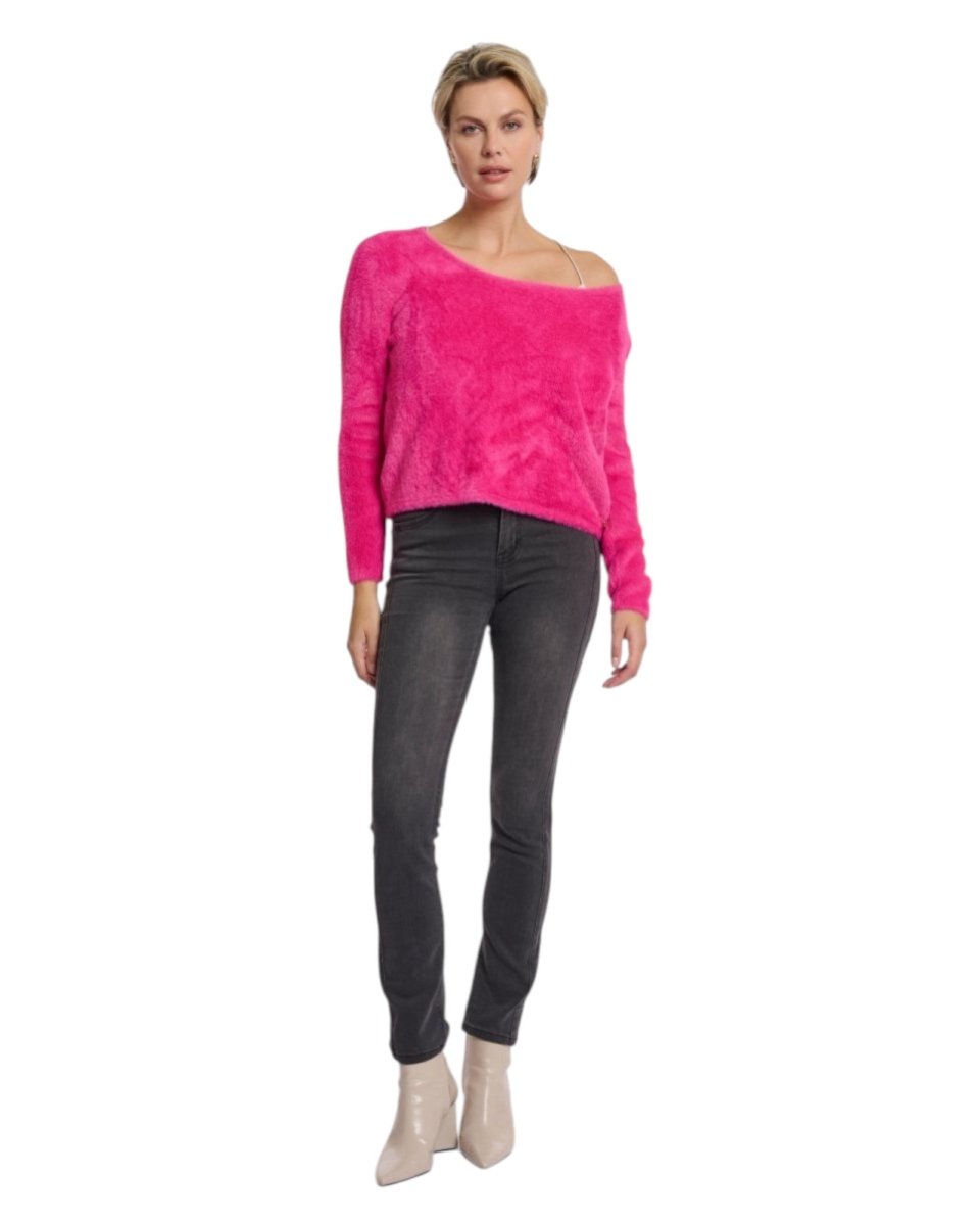 A chic, cozy knit that pairs plush texture with modern simplicity. The wide neckline and soft silhouette bring effortless elegance to casual looks.