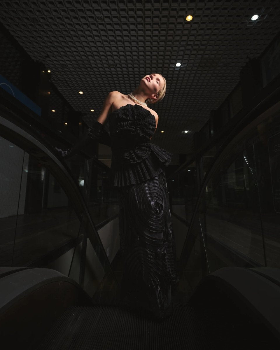 A graceful expression of modern couture. This maxi skirt features circular textured organza detailing that creates captivating depth and movement, embodying refined artistry with every fold.