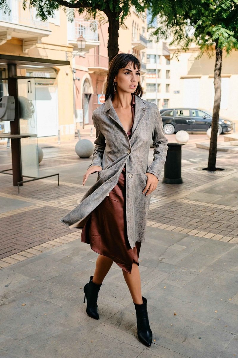 A bold statement piece with a sleek snake-print design, offering an edgy yet sophisticated appeal.