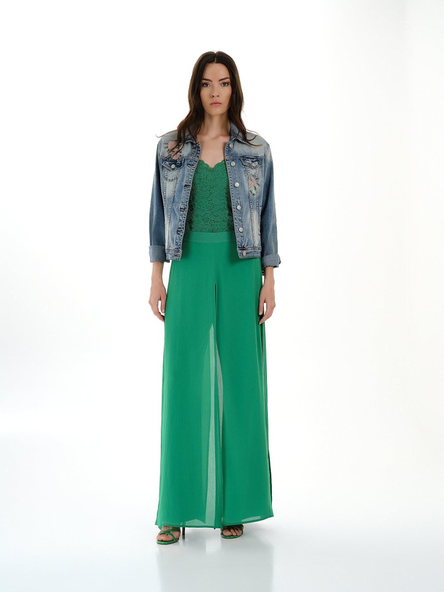 A denim staple reimagined with soft floral flair.