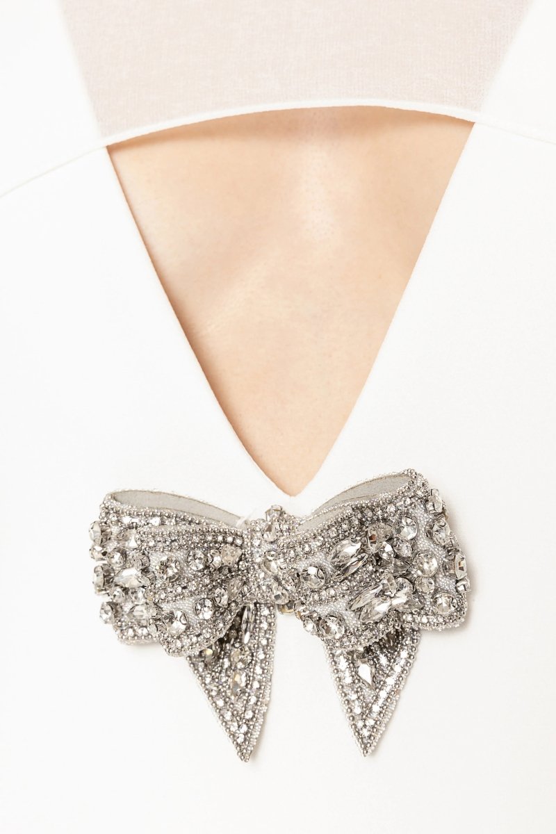 A striking blend of drama and elegance, this short dress stuns with its sculptural lines and ethereal cape overlay.