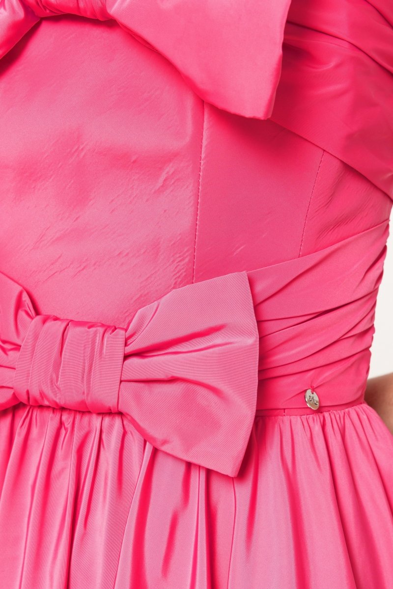 - Strapless bodice with two oversized bows