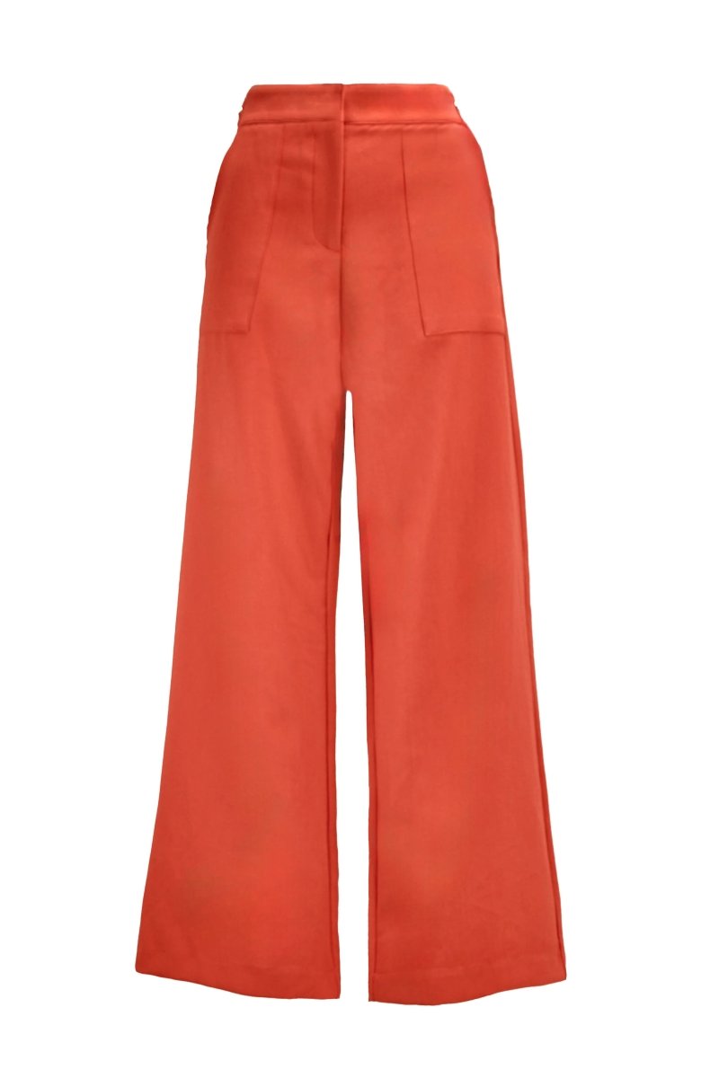 A bold, tailored trouser designed to make a statement. These wide-leg pants feature a high-rise waist and sleek front seams that elongate the silhouette. Crafted from fluid, lightweight fabric, they offer structure with graceful movement — perfect for warm-weather elegance or transitional dressing.