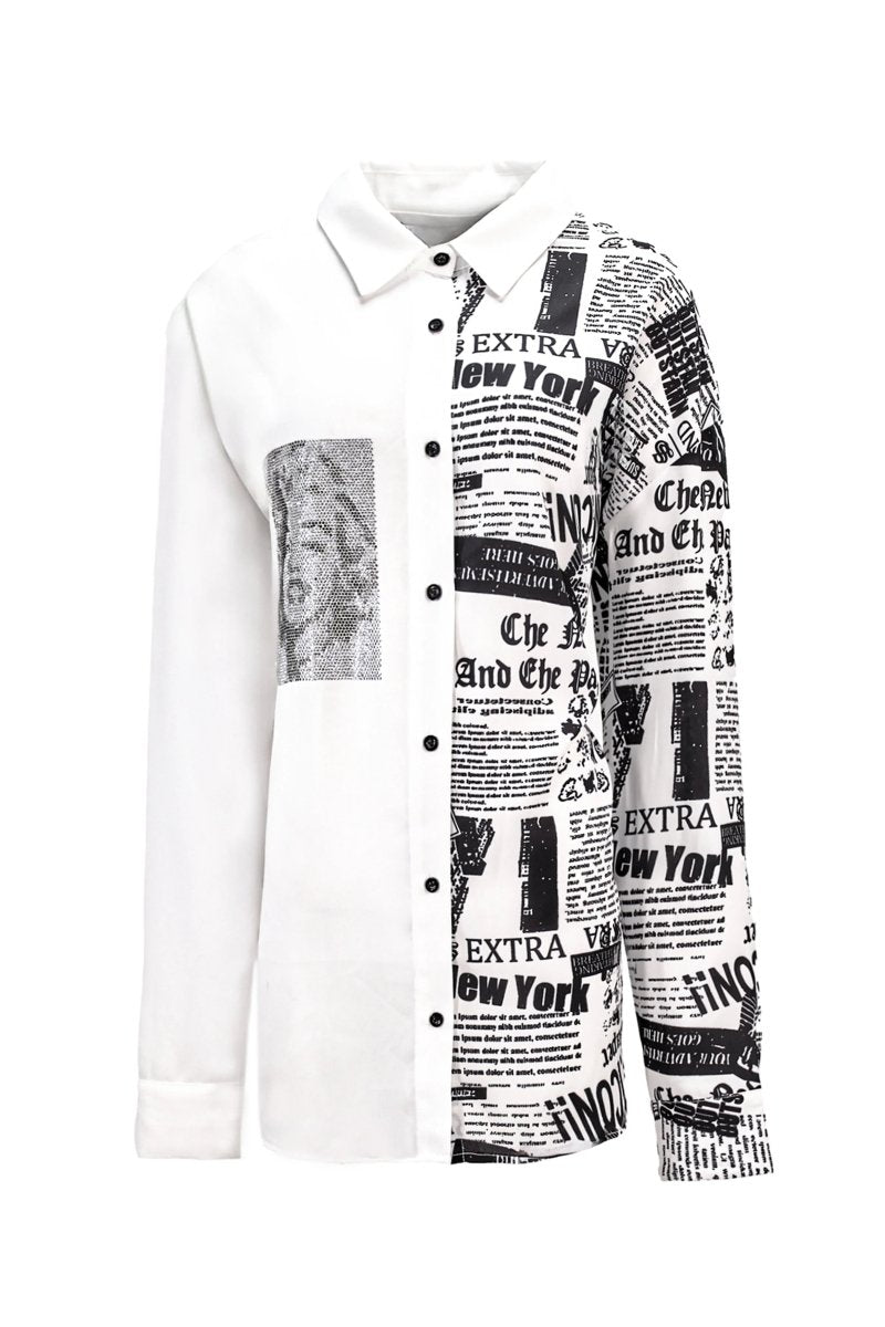 NEWSPAPER PRINT CONTRAST SHIRT