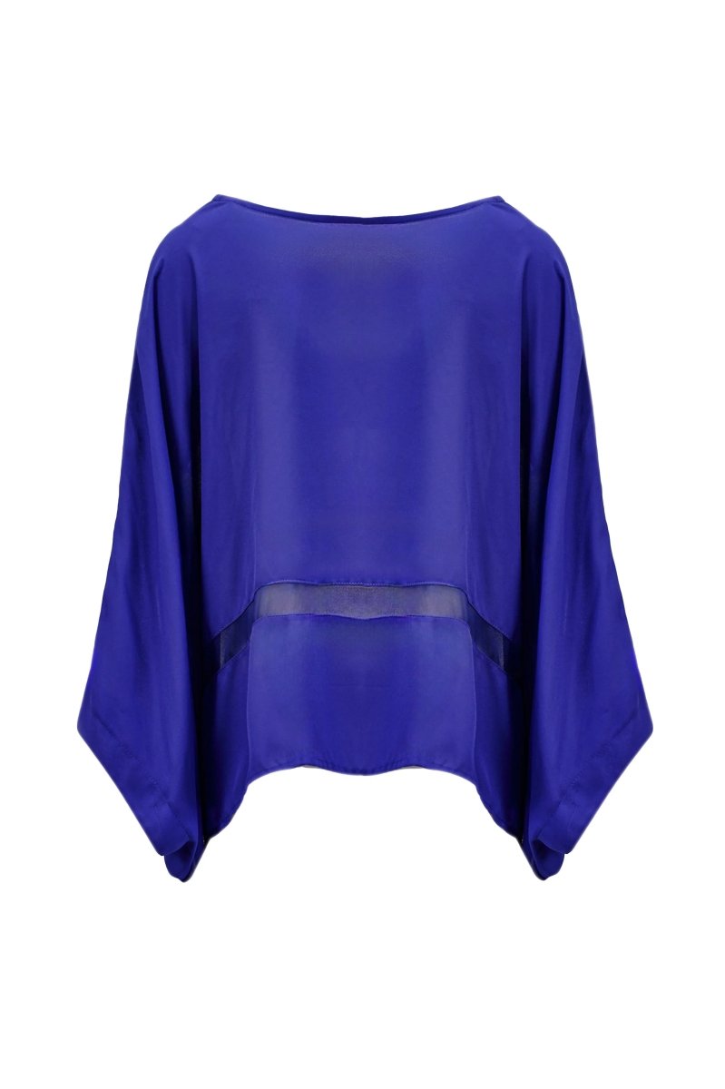 An elegant chiffon blouse with dramatic draping and shimmering sequin embellishments. Designed with a layered silhouette and sheer detailing, this piece brings graceful movement and subtle glamour to your wardrobe.
