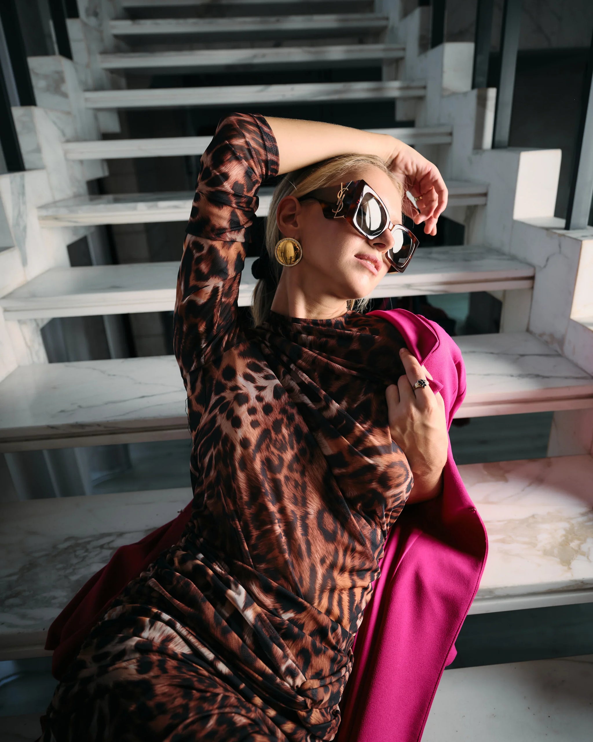 A captivating two-piece mesh set featuring a bold leopard print. Designed for modern elegance with a daring edge, balancing allure and sophistication.